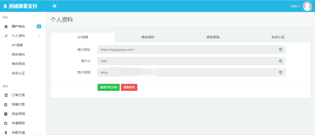4.登陆https://mzf.sf003.vip/注册商户后获取商户ID和密匙