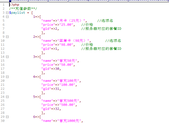 id = 3,           这里是充值id号,和你h5pay里config.php文件中的gid相对应